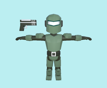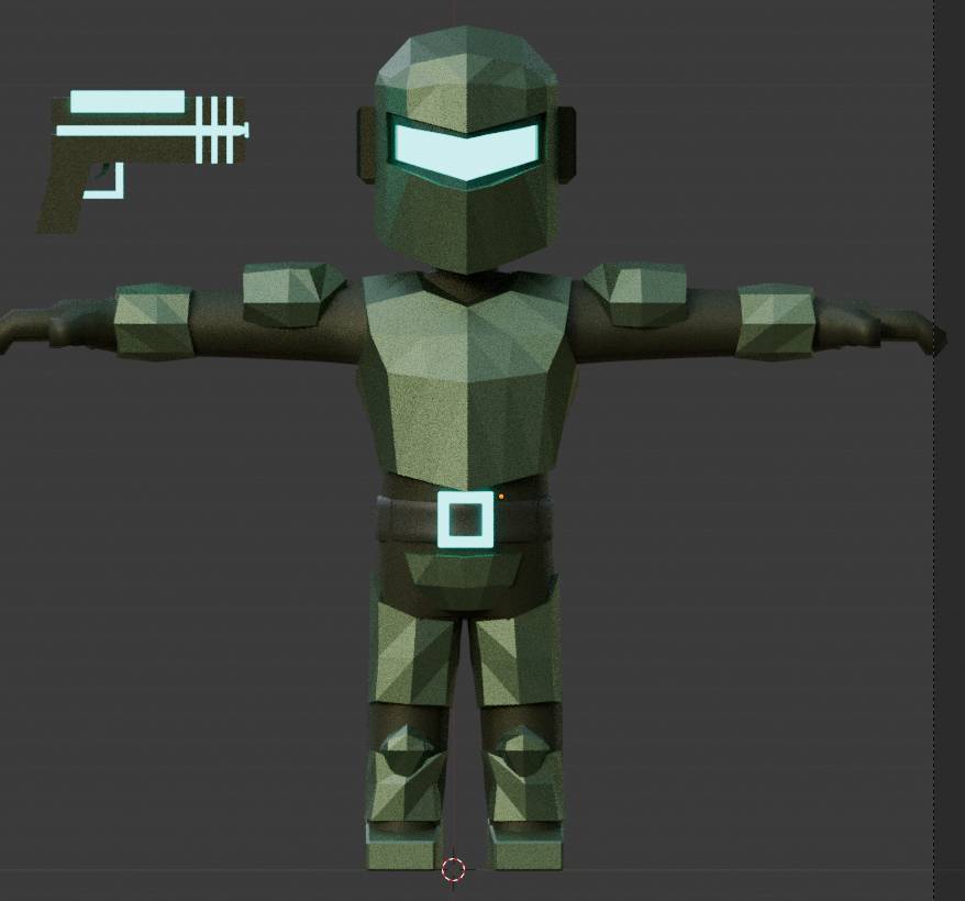 A stylized low-poly cyberbot character designed for sci-fi and futuristic games.